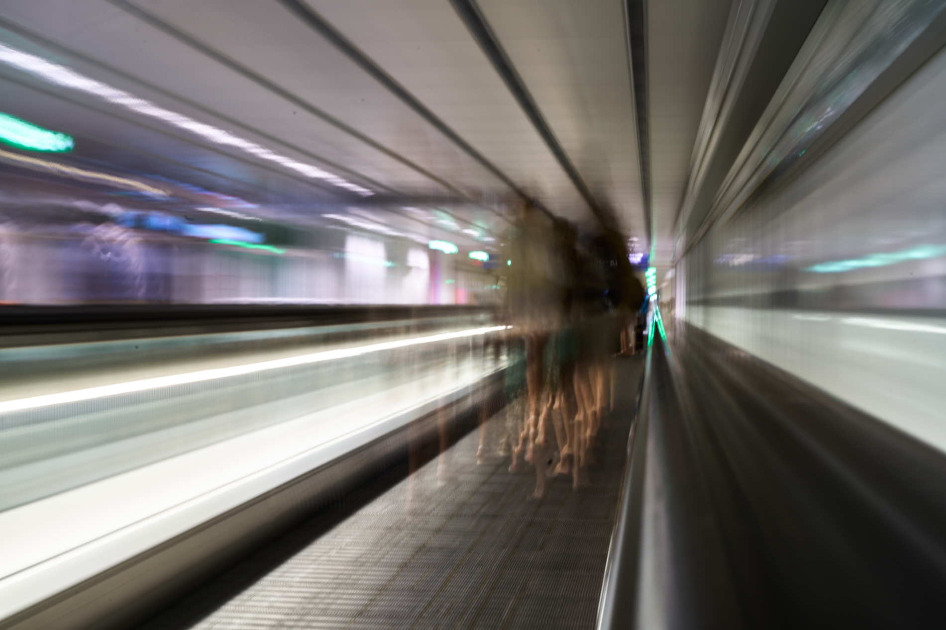 Der Flughafen München am Morgen gegen halb fünf. Es sind kaum Menschen unterwegs, nur direkt in der Nähe der CheckIn-Schalter. Ich bin noch müde und verdränge die Aufforderungen der optischen Augenblicke, mein Körper will zurück ins Bett, aber wo ich schon mal da bin… Sobald die Objektivkappe ab ist, sind wir uns ja doch wieder einig …